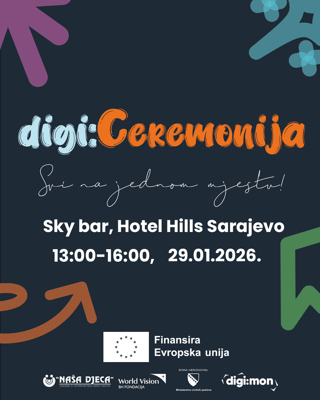 Događaj će biti održan 29.01.2026. godine (četvrtak) u terminu od 13:00 do 16:00 sati u Hotelu Hills Sarajevo, a okupit će predstavnike omladinskih organizacija, institucija, medija i partnera, kako bi se zajedno predstavili ključni rezultati projekta i naredni koraci u unapređenju statusa mladih u Bosni i Hercegovini.